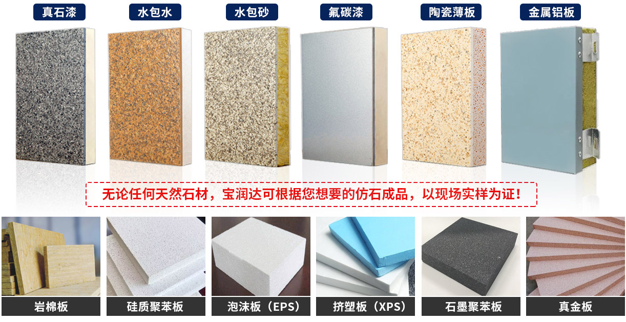 寶潤(rùn)達(dá)擁有6條先進(jìn)自動(dòng)化一體板生產(chǎn)線,可生產(chǎn)飾面效果{真石漆、多彩漆,水包水,水包沙,實(shí)色/金屬氟碳漆、陶瓷薄板、鋁板},保溫芯材采用{ A級(jí)防火巖棉板,真金板,擠塑板,泡沫板,石墨聚苯板,硅脂聚苯板}等,滿(mǎn)足各種項(xiàng)目芯材、飾面效果定制要求,日產(chǎn)量12000平,極速發(fā)貨。